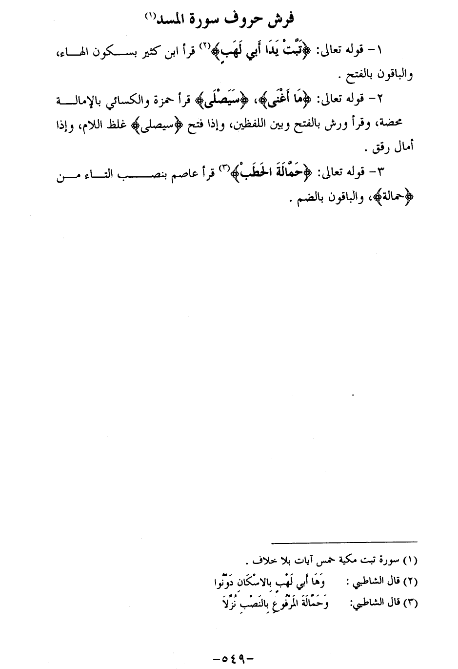 (¬2) قال الشاطبي: وها أبي لهب بالإسكان دونوا