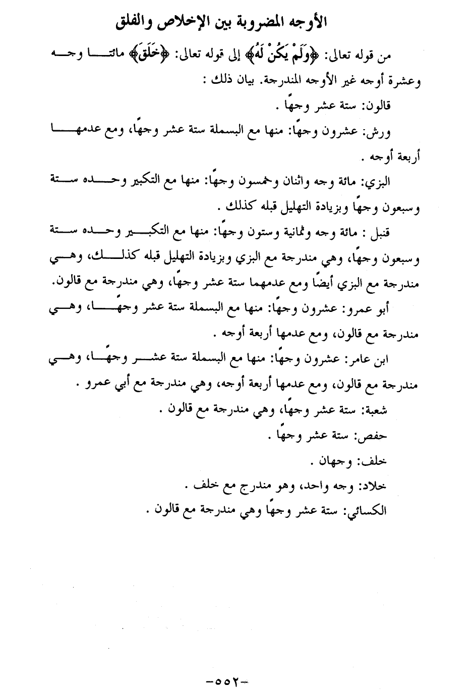 من قوله تعالى: وَلَمْ يَكُنْ لَهُ إلى قوله تعالى: خَلَقَ مائتا وجه وعشرة أوجه غير الأوجه المندرجة. بيان ذلك: