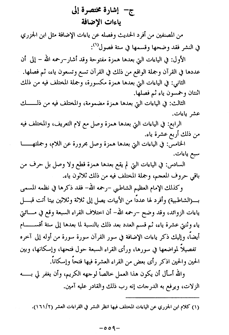 من المصنفين من أفرد الحديث وفصله عن ياءات الإضافة مثل ابن الجزري في النشر فقد وضحها وقسمها في ستة فصول (¬1):