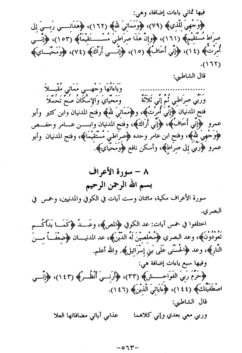 حَرَّمَ رَبِّيَ الْفَواحِشَ (33)، أَرِنِي أَنْظُرْ (143)، إِنِّي اصْطَفَيْتُكَ (144)، آياتِيَ الَّذِينَ (146).