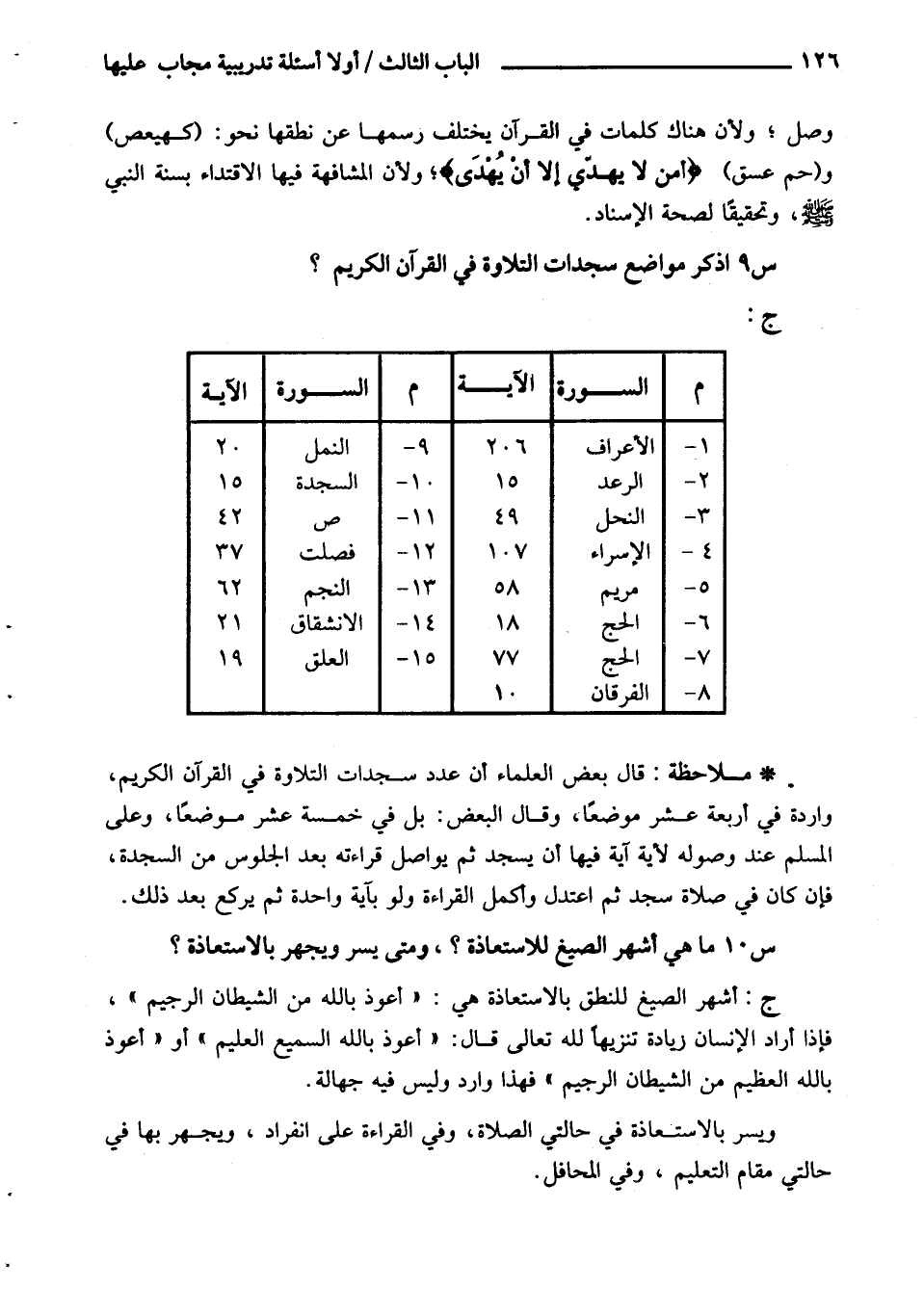 س 9 اذكر مواضع سجدات التلاوة في القرآن الكريم؟