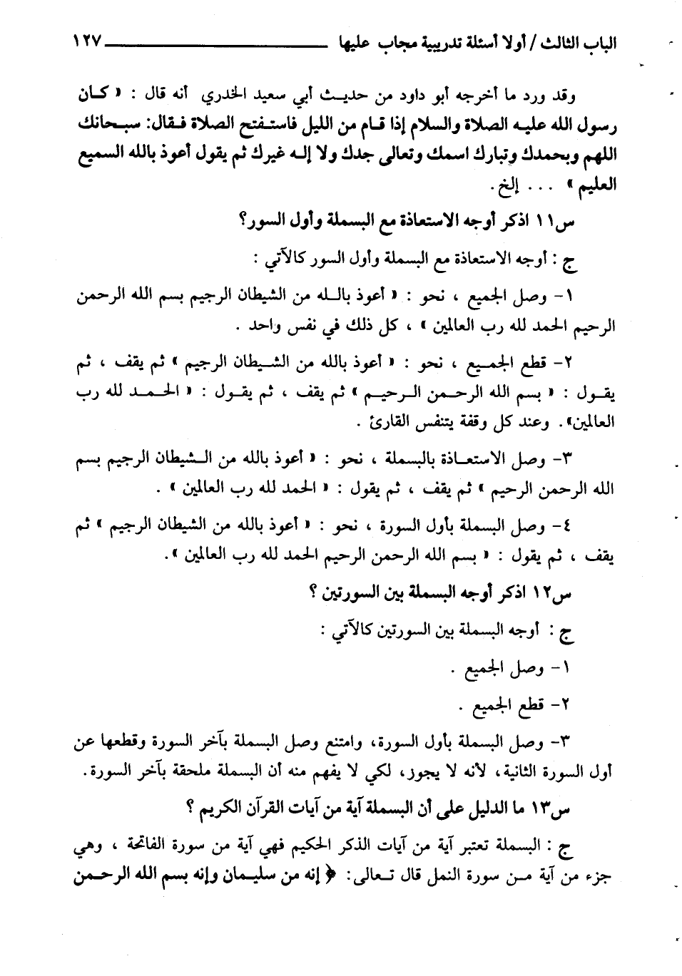 س 13 ما الدليل على أن البسملة آية من آيات القرآن الكريم؟