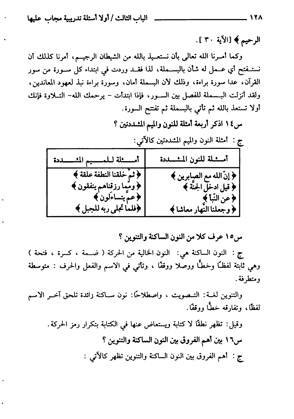 أمثلة للنون المشددة/ أمثلة للميم المشددة إِنَّ اللَّهَ مَعَ الصَّابِرِينَ/ ثُمَّ خَلَقْنَا النُّطْفَةَ عَلَقَةً قِيلَ ادْخُلِ الْجَنَّةَ/ وَمِمَّا رَزَقْناهُمْ يُنْفِقُونَ عَنِ النَّبَإِ/ عَمَّ يَتَساءَلُونَ وَجَعَلْنَا النَّهارَ مَعاشاً/ فَلَمَّا تَجَلَّى رَبُّهُ لِلْجَبَلِ س 15 عرف كلا من النون الساكنة والتنوين؟