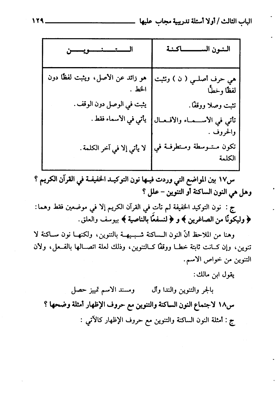 وهنا من الملاحظ أنّ النون الساكنة شبيهة بالتنوين، ولكنها نون ساكنة لا تنوين، وإن كانت ثابتة خطا ووقفا كالتنوين، وذلك لعلة اتصالها بالفعل، ولأن التنوين من خواص الاسم.