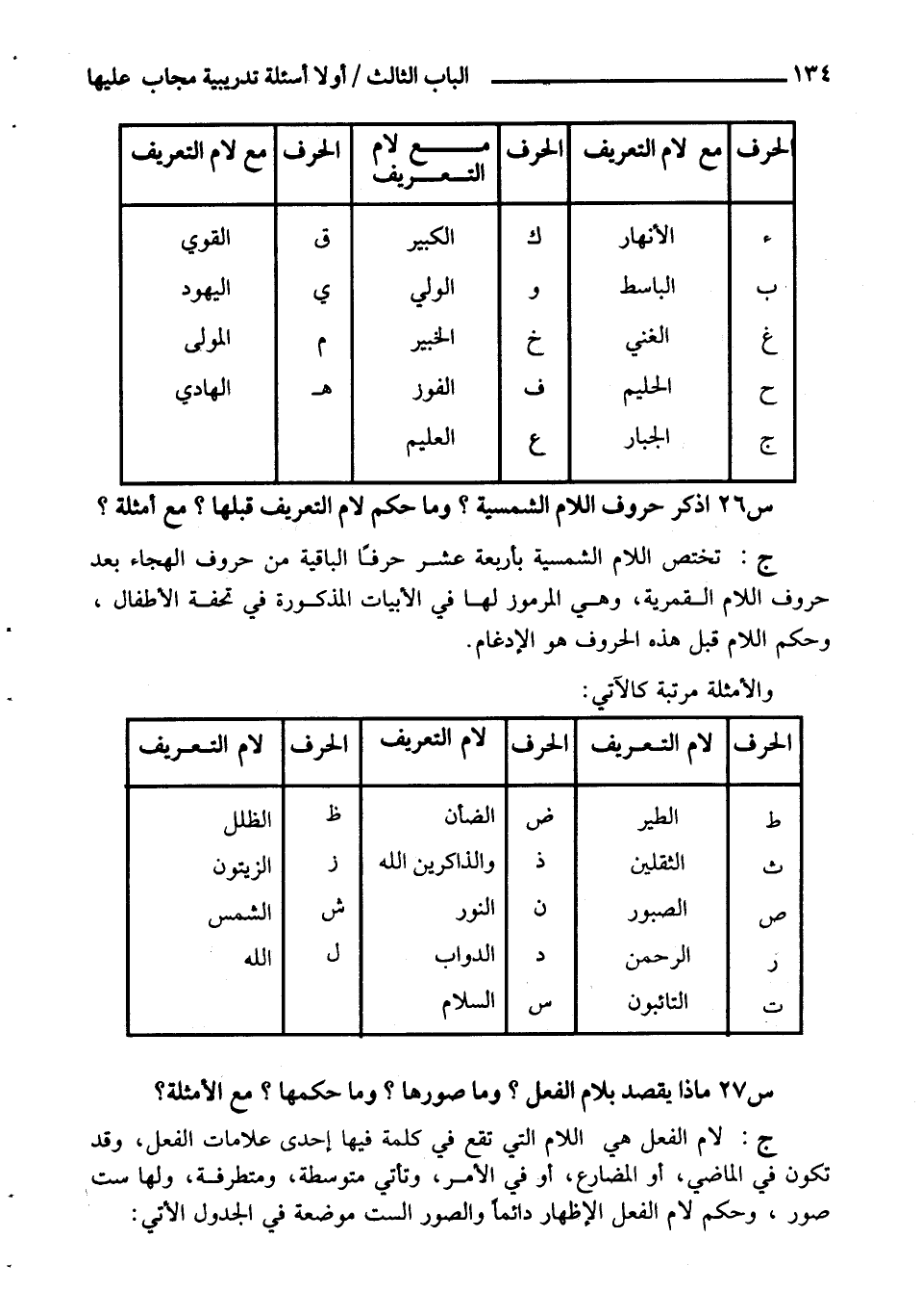 الحرف/ لام التعريف/ الحرف/ لام التعريف/ الحرف/ لام التعريف ط/ الطير/ ض/ الضأن/ ظ/ الظلل ث/ الثقلين/ ذ/ والذاكرين الله/ ز/ الزيتون ص/ الصبور/ ن/ النور/ ش/ الشمس ر/ الرحمن/ د/ الدواب/ ل/ الله ت/ التائبون/ س/ السلام// س 27ماذا يقصد بلام الفعل؟ وما صورها؟ وما حكمها؟ مع الأمثلة؟