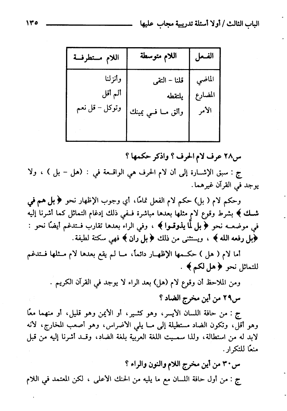 الفعل/ اللام متوسطة/ اللام متطرفة الماضي/ قلنا - التقى/ وأنزلنا المضارع/ يلتقطه/ ألم أقل الأمر/ وألق ما في يمينك/ وتوكل - قل نعم س 28 عرف لام الحرف؟ واذكر حكمها؟