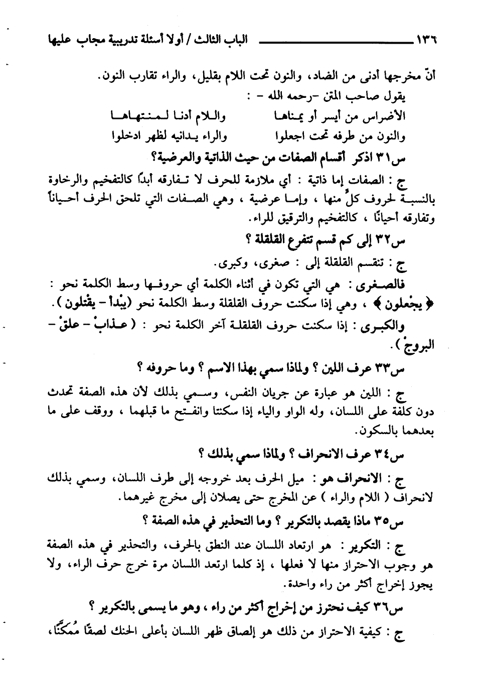س 36 كيف نحترز من إخراج أكثر من راء، وهو ما يسمى بالتكرير؟