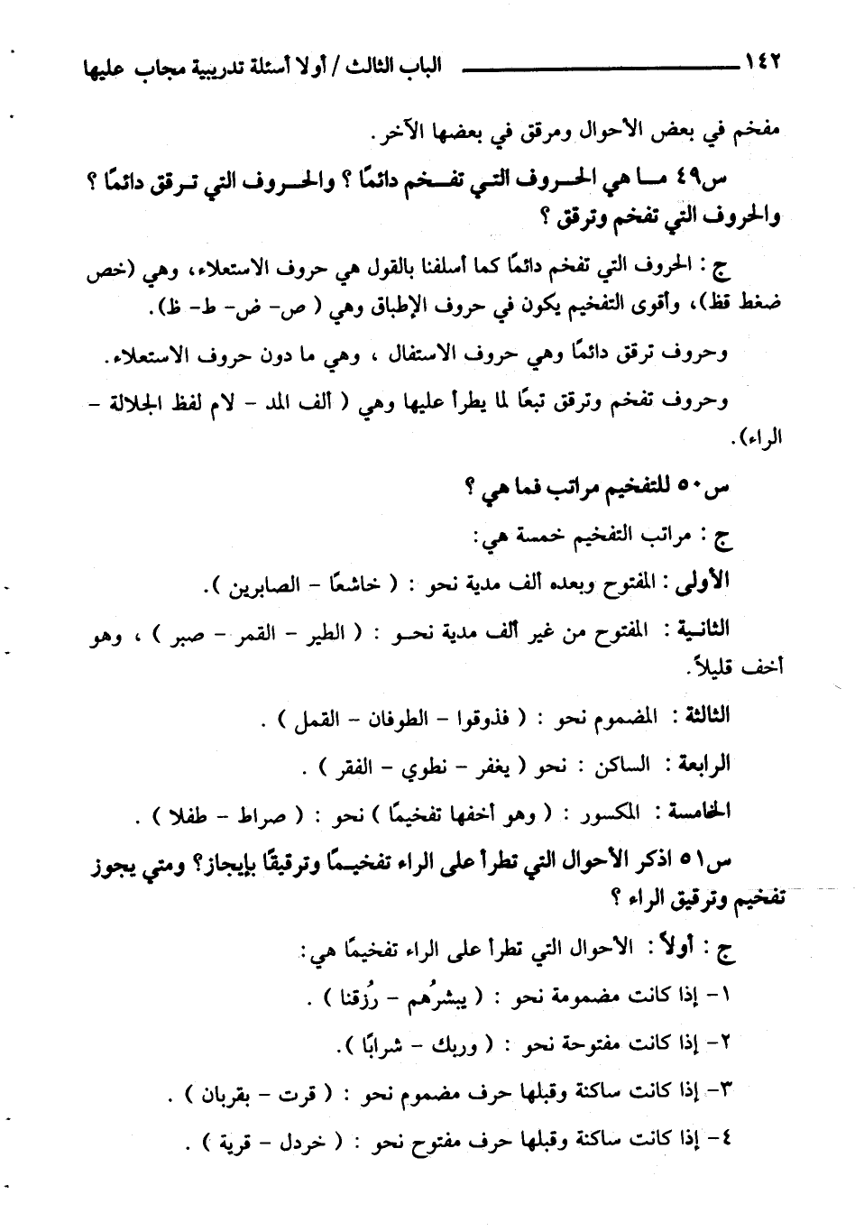 س 49 ما هي الحروف التي تفخم دائما؟ والحروف التي ترقق دائما؟