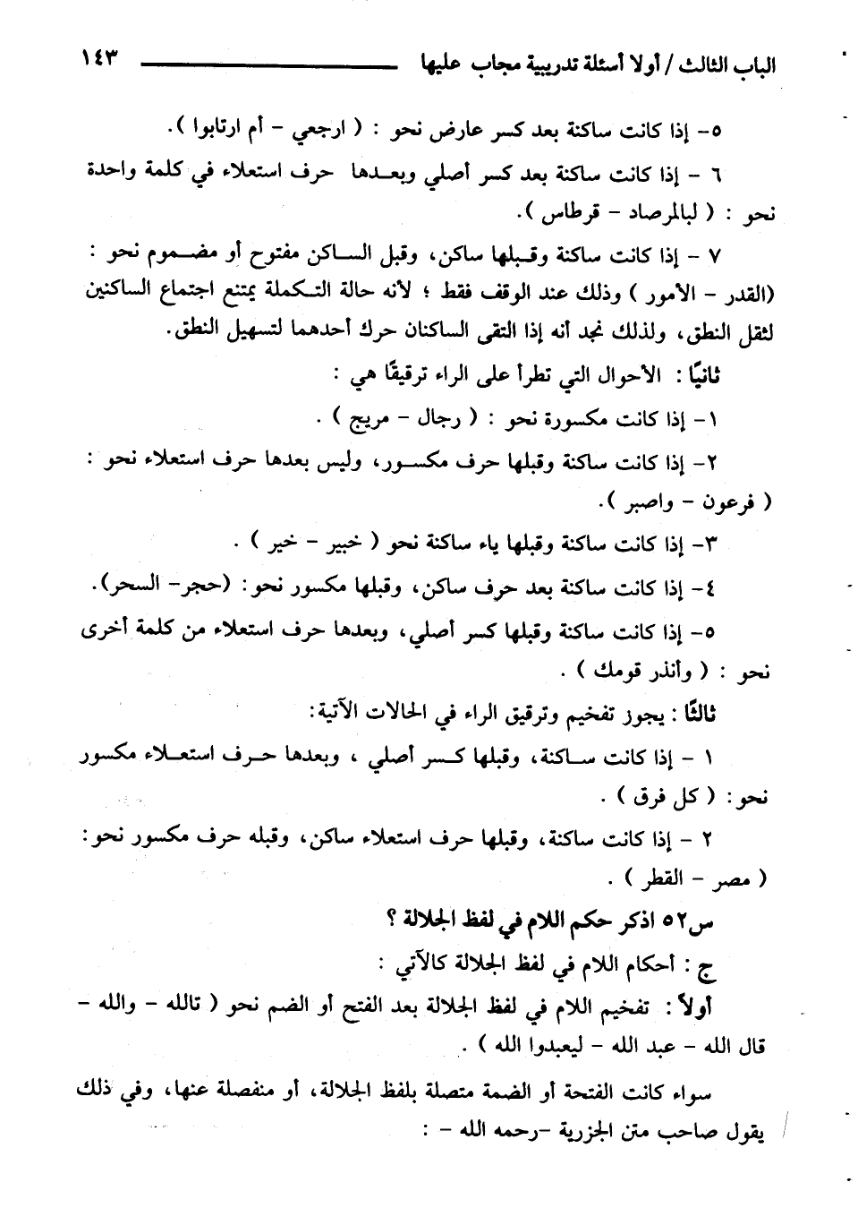 س 52 اذكر حكم اللام في لفظ الجلالة؟