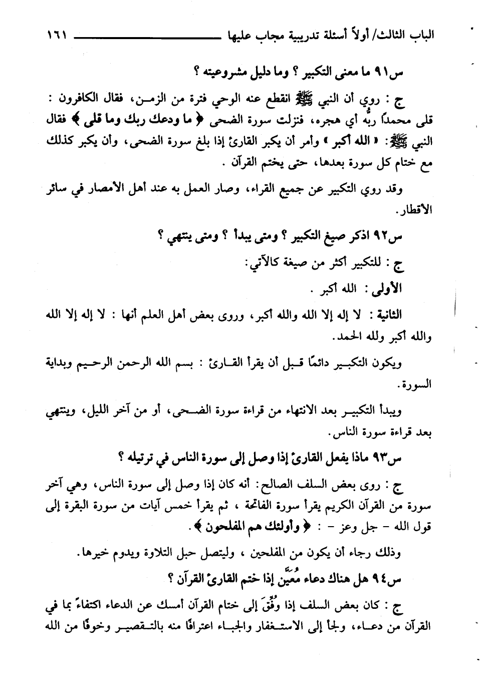 س 92 اذكر صيغ التكبير؟ ومتى يبدأ؟ ومتى ينتهي؟