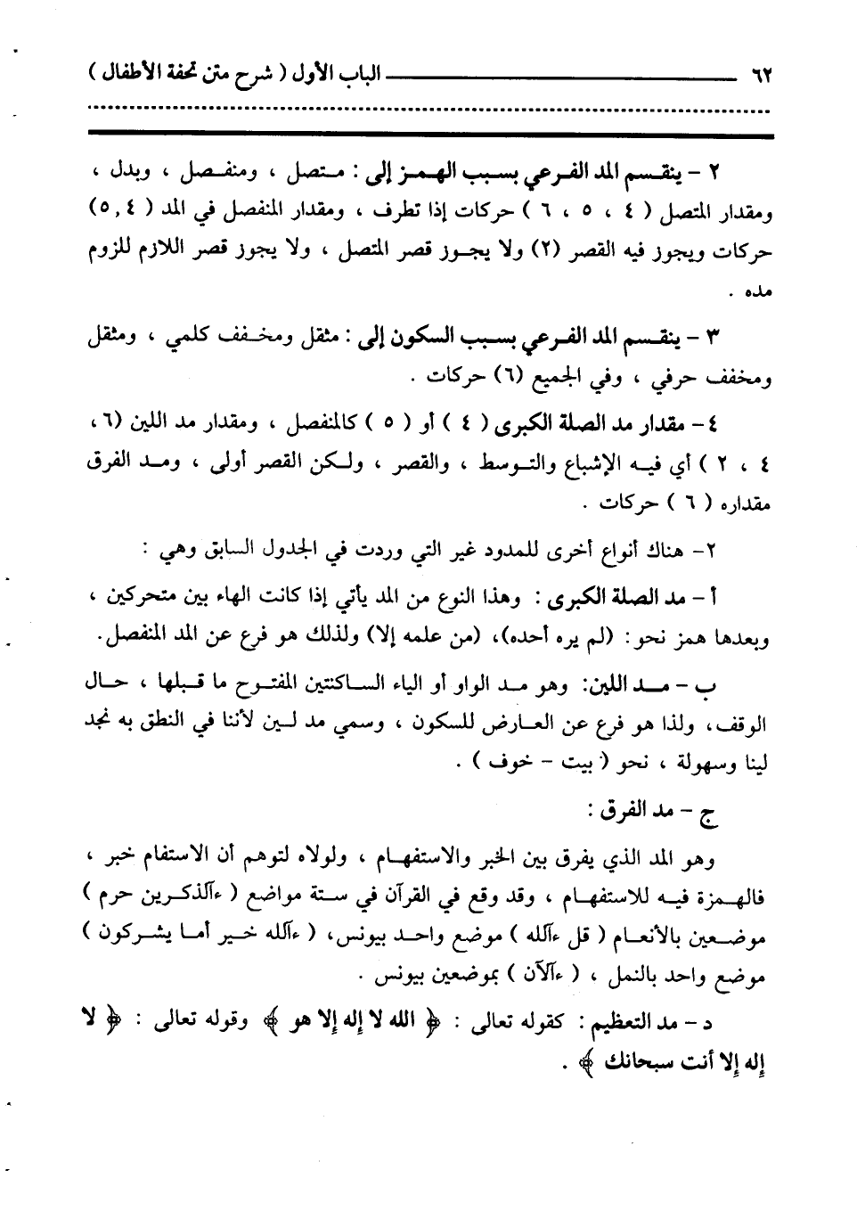 د - مد التعظيم: كقوله تعالى: اللَّهُ لا إِلهَ إِلَّا هُوَ وقوله تعالى: لا إِلهَ إِلَّا أَنْتَ سُبْحانَكَ.