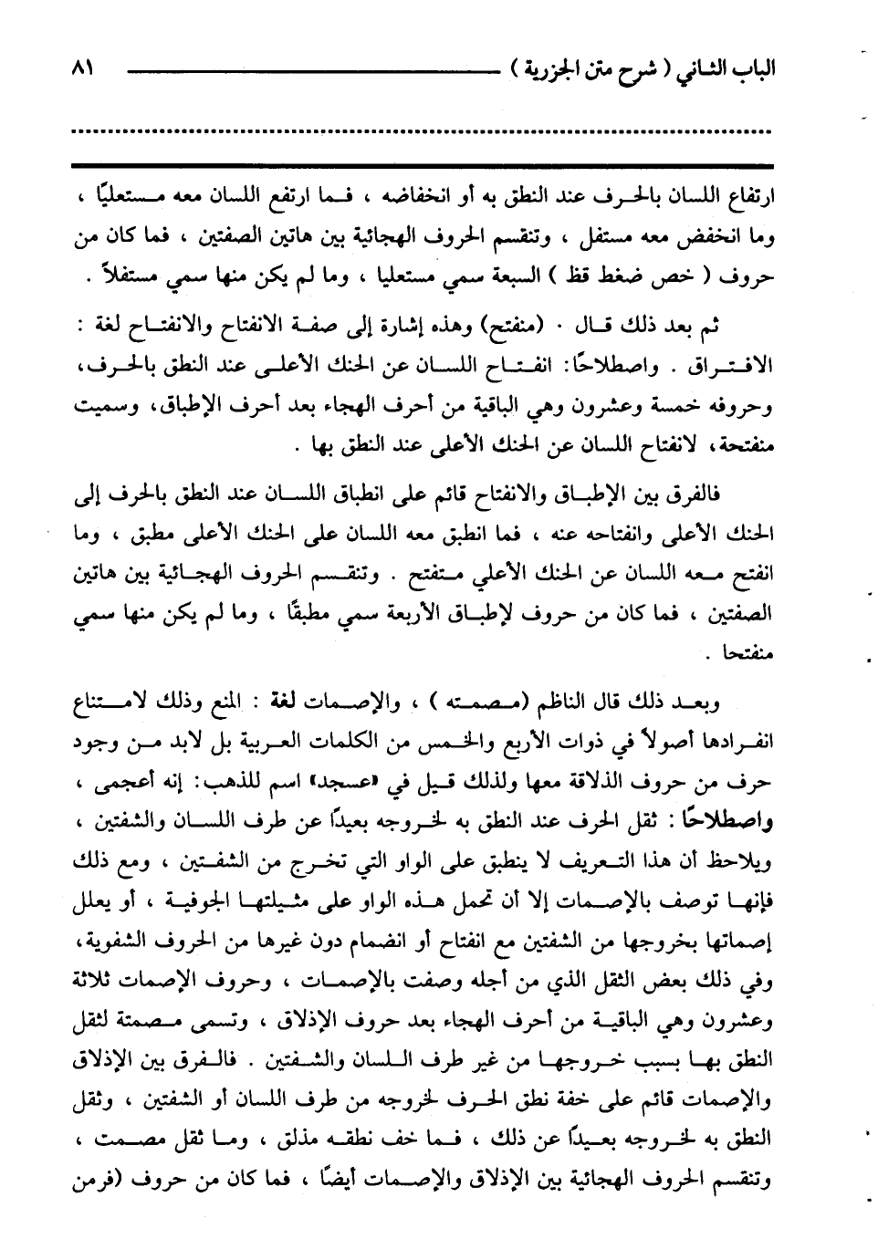 ثم بعد ذلك قال. (منفتح) وهذه إشارة إلى صفة الانفتاح والانفتاح لغة: