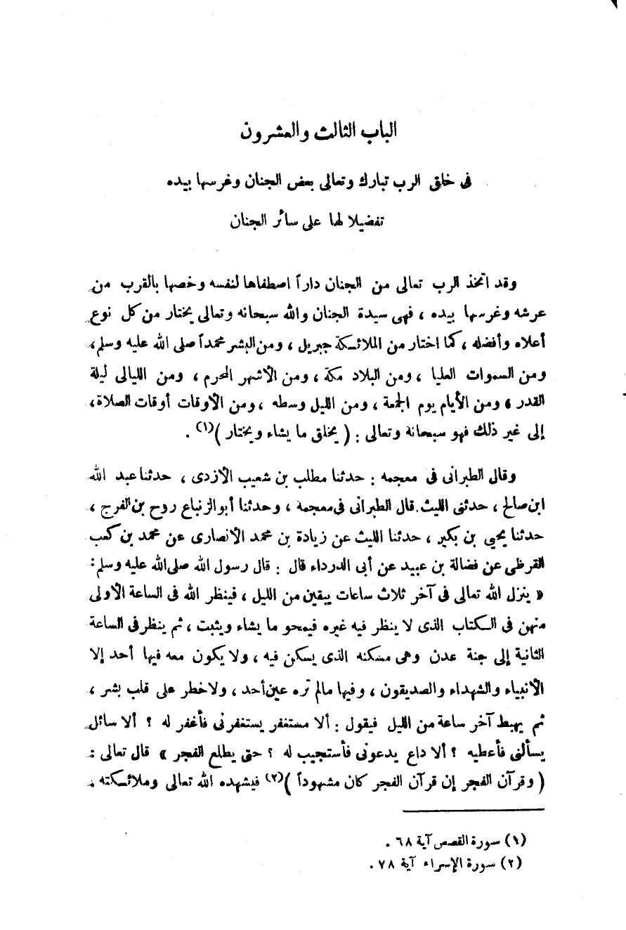 الباب الثالث والعشرون: في خلق الرب تبارك وتعالى بعض الجنان وغرسها بيده تفضيلا لها على سائر الجنان