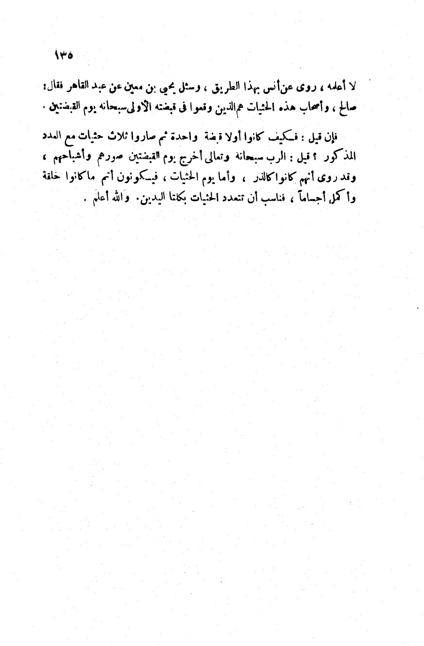 لا أعلمه روى عن أنس بهذا الطريق وسئل يحيى بن معين عن عبد القاهر فقال صالح وأصحاب هذه الحثيات هم الذين وقعوا في قبضته الأولى سبحانه يوم القبضتين