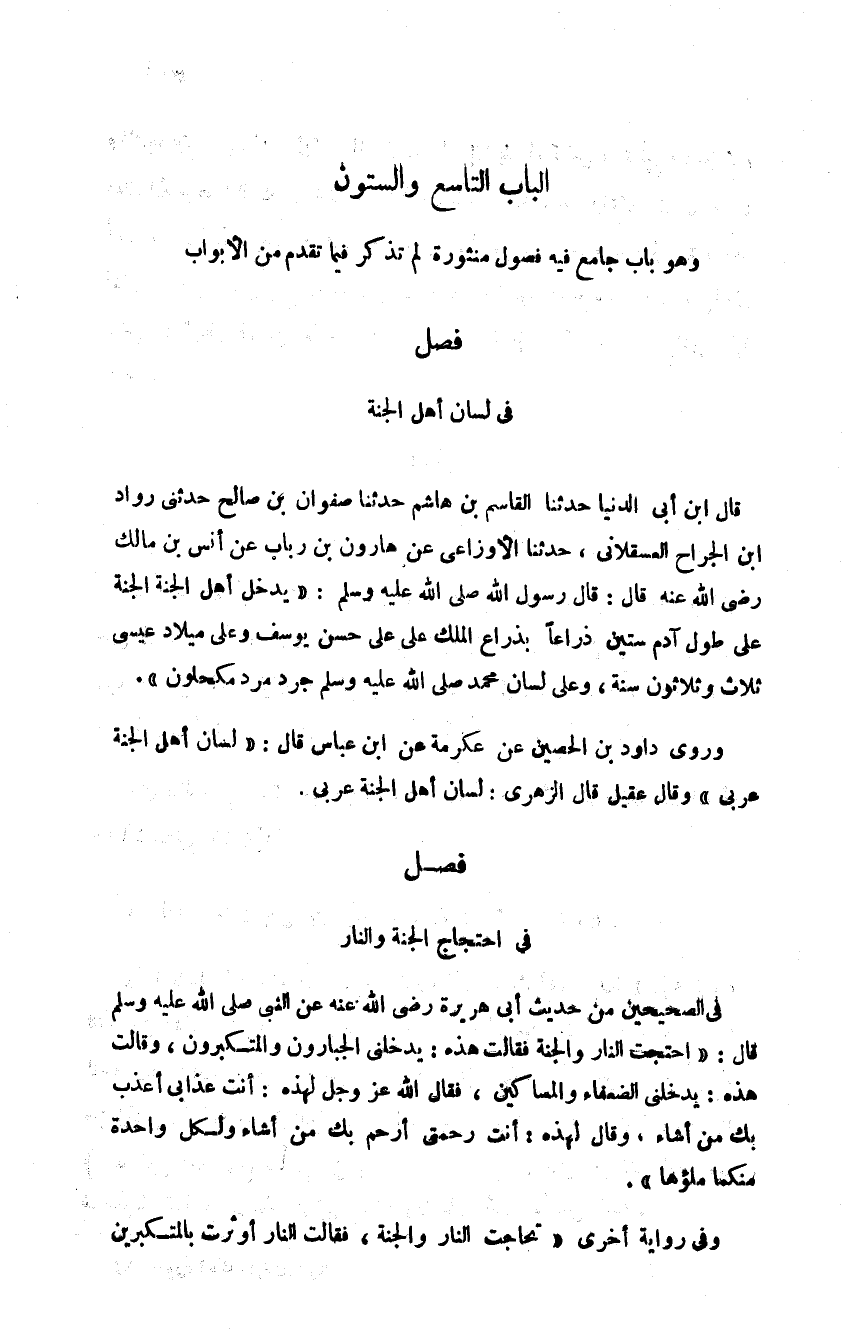 وروى داود بن الحصين عن عكرمة عن ابن عباس قال لسان أهل الجنة عربي وقال عقيل قال الزهري لسان أهل الجنة عربي