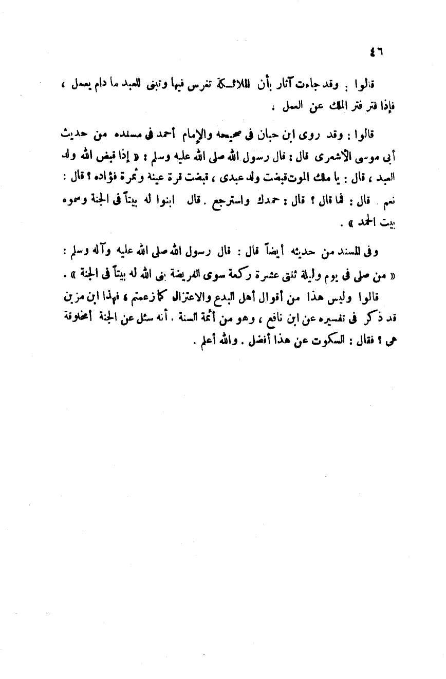 قالوا وقد روى ابن حبان في صحيحه والإمام أحمد في مسنده من حديث أبي موسى الأشعري قال قال رسول الله: "إذا قبض الله ولد العبد قال يا ملك الموت قبضت ولد عبدي قبضت قرة عينه وثمرة فؤاده قال نعم قال فما قال قال حمدك واسترجع قال ابنوا له بيتا في الجنة وسموه بيت الحمد "