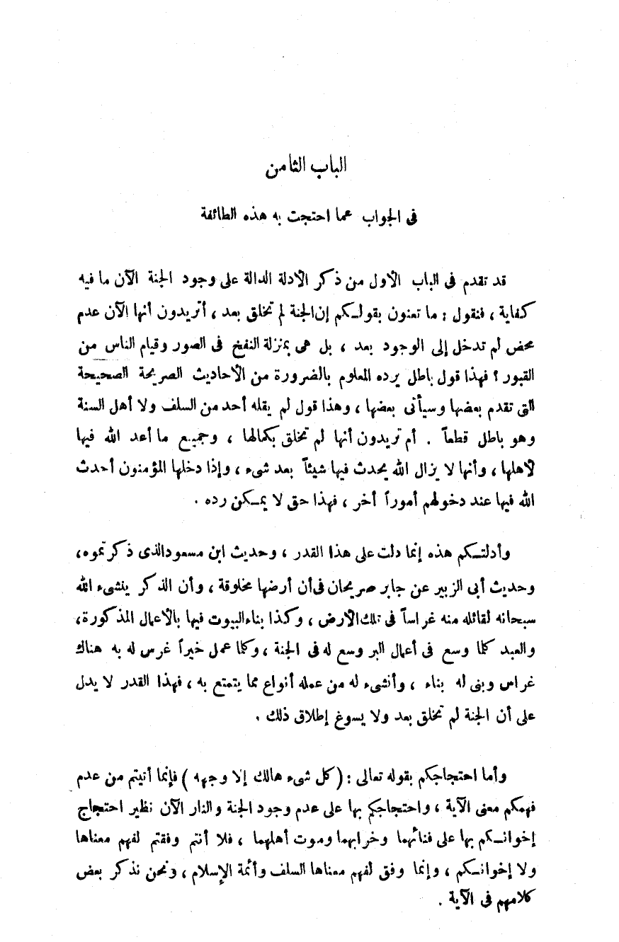 الباب الثامن: في الجواب عما احتجت به هذه الطائفة