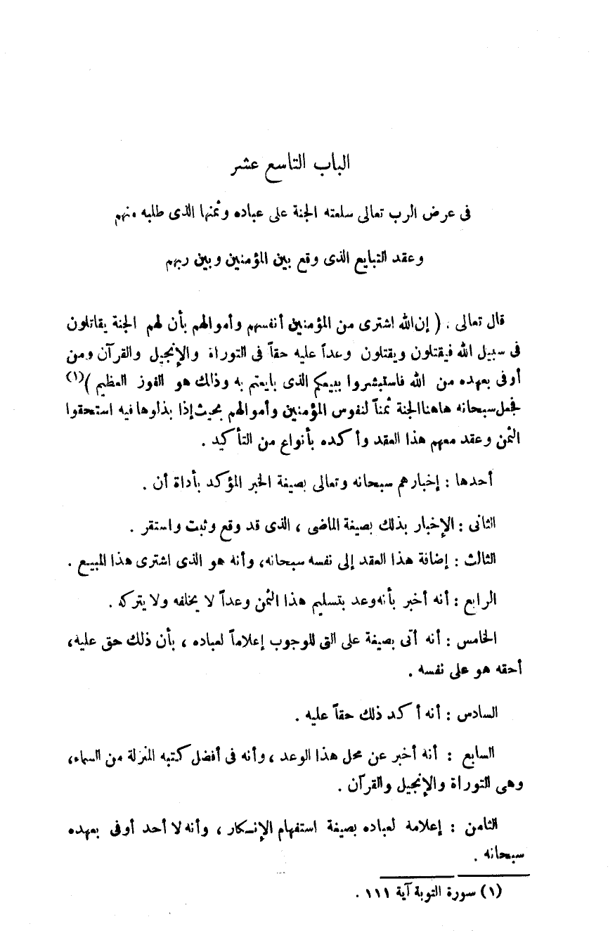 الباب التاسع عشر: في عرض الرب تعالى سلعته الجنة على عباده وثمنها الذي طلبه منهم وعقد التبايع الذي وقع بين المؤمنين وبين ربهم
