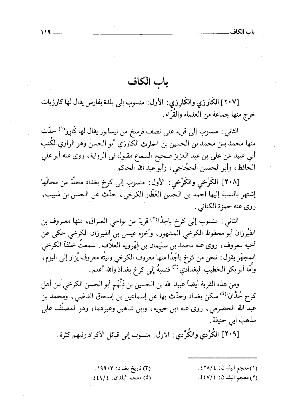 (209) الْكرْدِي والكردي الأول مَنْسُوب إِلَى قبائل الأكراد وَفِيهِمْ كَثْرَة