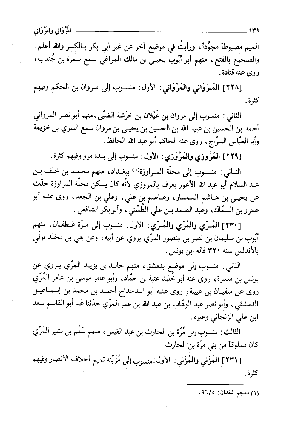 (228) المرواني والمرواني الأول مَنْسُوب إِلَى مَرْوَان بن الحكم وَفِيهِمْ كَثْرَة