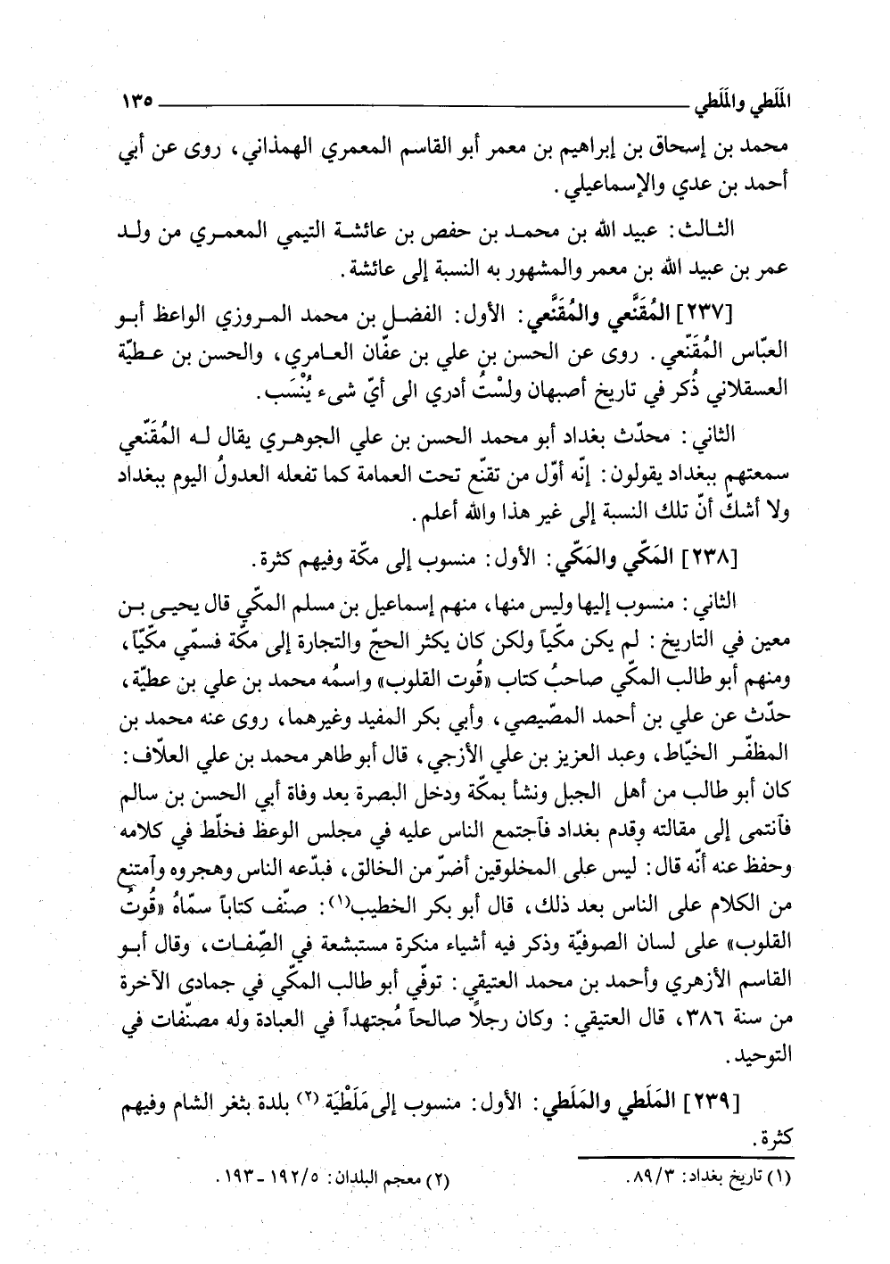 (239) الْمَلْطِي والملطي الأول مَنْسُوب إِلَى ملطية بَلْدَة بثغر الشَّام وَفِيهِمْ كَثْرَة