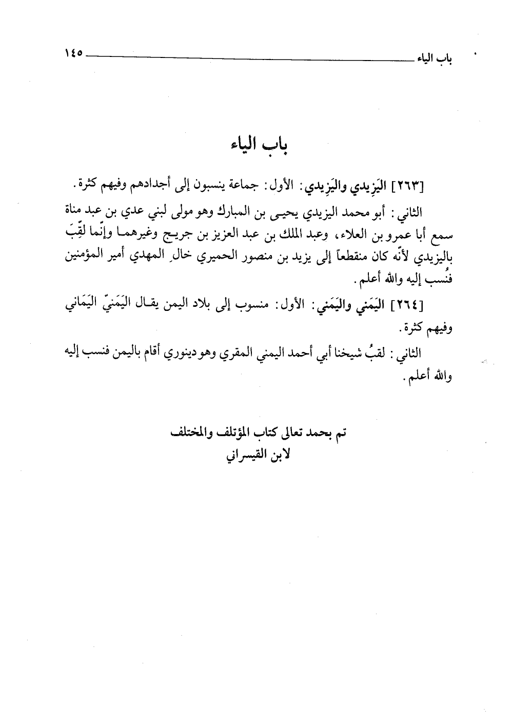 (263) اليزيدي واليزيدي الأول جمَاعَة ينسبون إِلَى أجدادهم وَفِيهِمْ كَثْرَة
