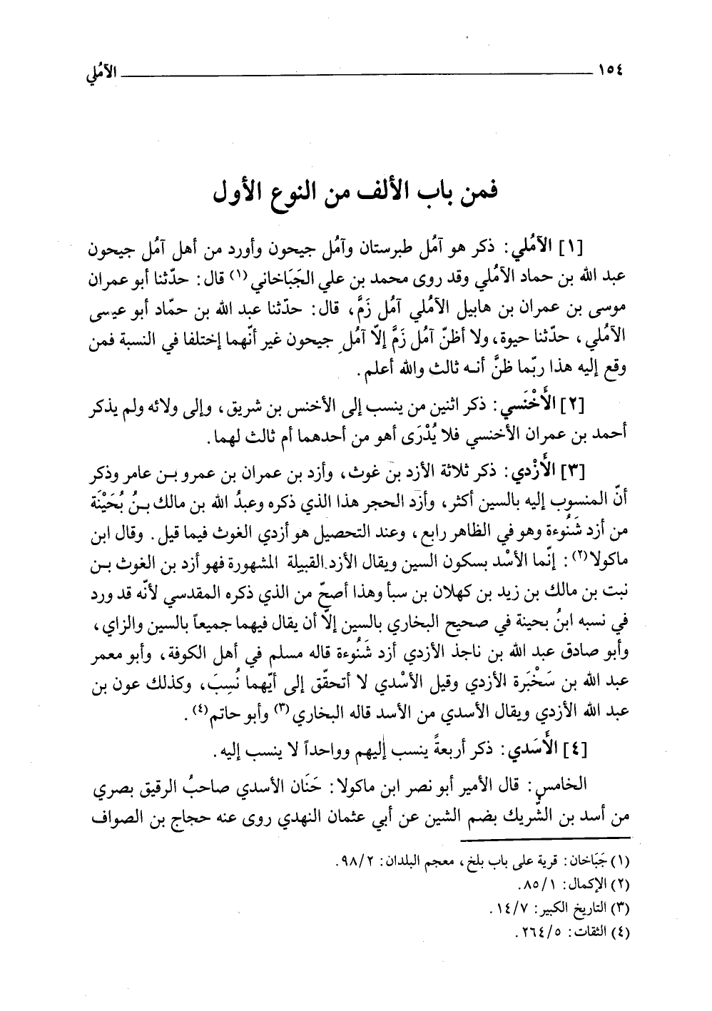 (1) الآملي ذكر هُوَ آمل طبرستان وآمل جيحون وَأورد من أهل آمل جيحون عبد الله بن حَمَّاد الآملي وَقد روى مُحَمَّد بن عَليّ الجباخاني قَالَ حَدثنَا أَبُو عمرَان مُوسَى بن عمرَان بن هابيبل الآملي آمل زم قَالَ حَدثنَا عبد الله بن حَمَّاد أَبُو عِيسَى الآملي حَدثنَا حَيْوَة وَلَا أَظن زم إِلَّا آمل جيحون غير أَنَّهُمَا إختلفا فِي النِّسْبَة فَمن وَقع إِلَيْهِ هَذَا رُبمَا ظن أَنه ثَالِث وَالله أعلم