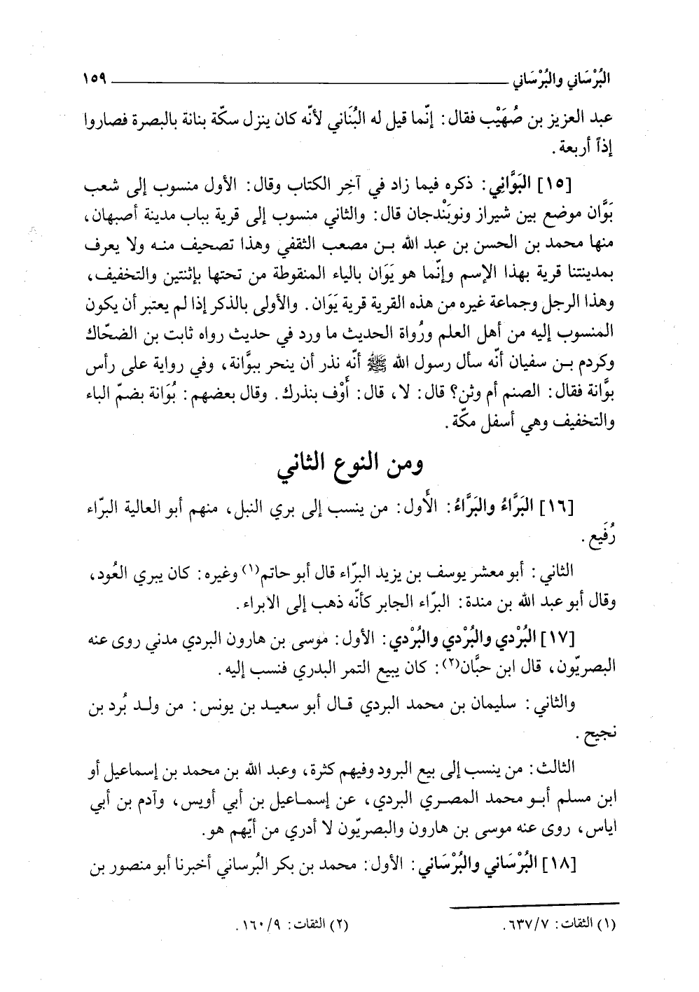 (16) الْبَراء والبراء الأول من ينْسب إِلَى بري النبل مِنْهُم أَبُو الْعَالِيَة الْبَراء رفيع