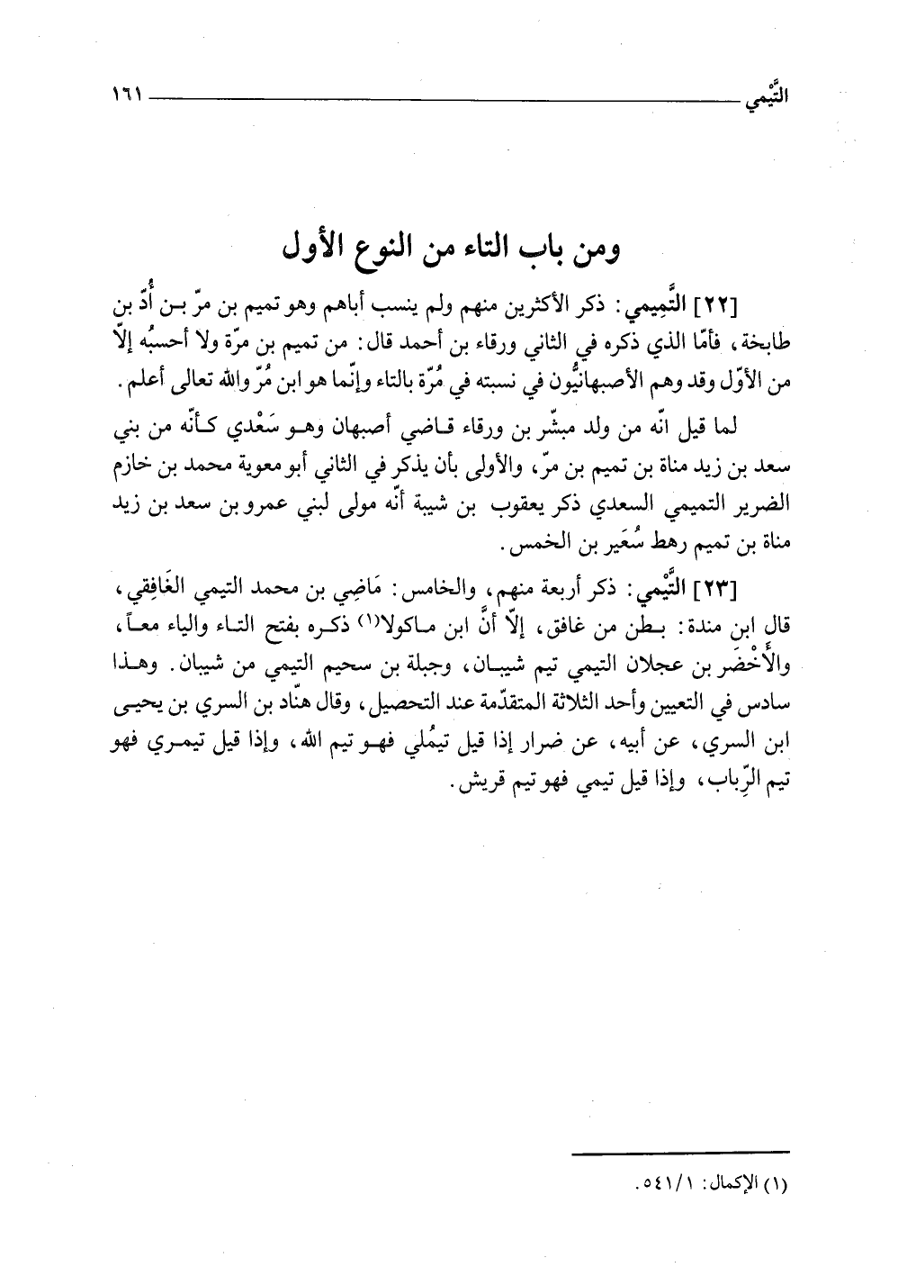(22) التَّمِيمِي ذكر الْأَكْثَرين مِنْهُم وَلم ينْسب أباهم وَهُوَ تَمِيم بن مر بن أد بن طابخة فَأَما الَّذِي ذكره فِي الثَّانِي وَرْقَاء بن أَحْمد قَالَ من تَمِيم بن مرّة وَلَا أَحْسبهُ إِلَّا من الأول وَقد وهم الأصبهانيون فِي نسبته فِي مرّة بِالتَّاءِ وَإِنَّمَا هُوَ ابْن مر وَالله تَعَالَى أعلم