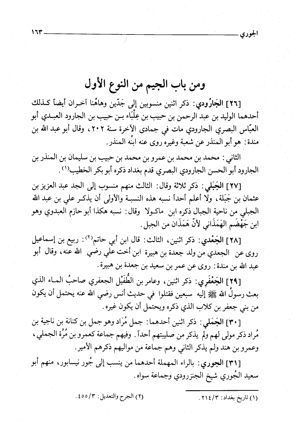 وَمن بَاب الْجِيم من النَّوْع الأول