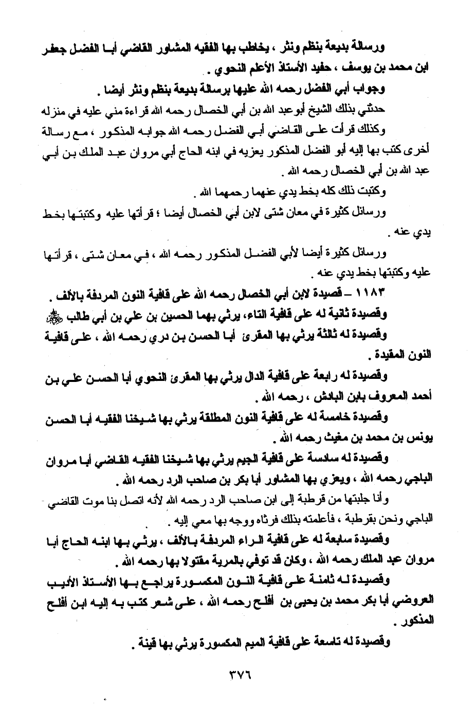 ورسالة بديعة بنظم ونثر يُخَاطب بهَا الْفَقِيه المشاور القَاضِي أَبَا الْفضل جَعْفَر ابْن مُحَمَّد بن يُوسُف حفيد الْأُسْتَاذ الأعلم النَّحْوِيّ
