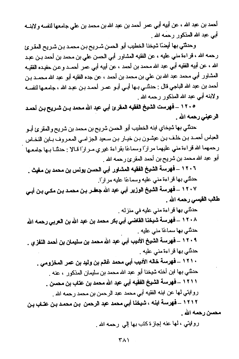 1211 - فهرسة الشَّيْخ الْفَقِيه أبي عبد الله مُحَمَّد بن عتاب بن محسن