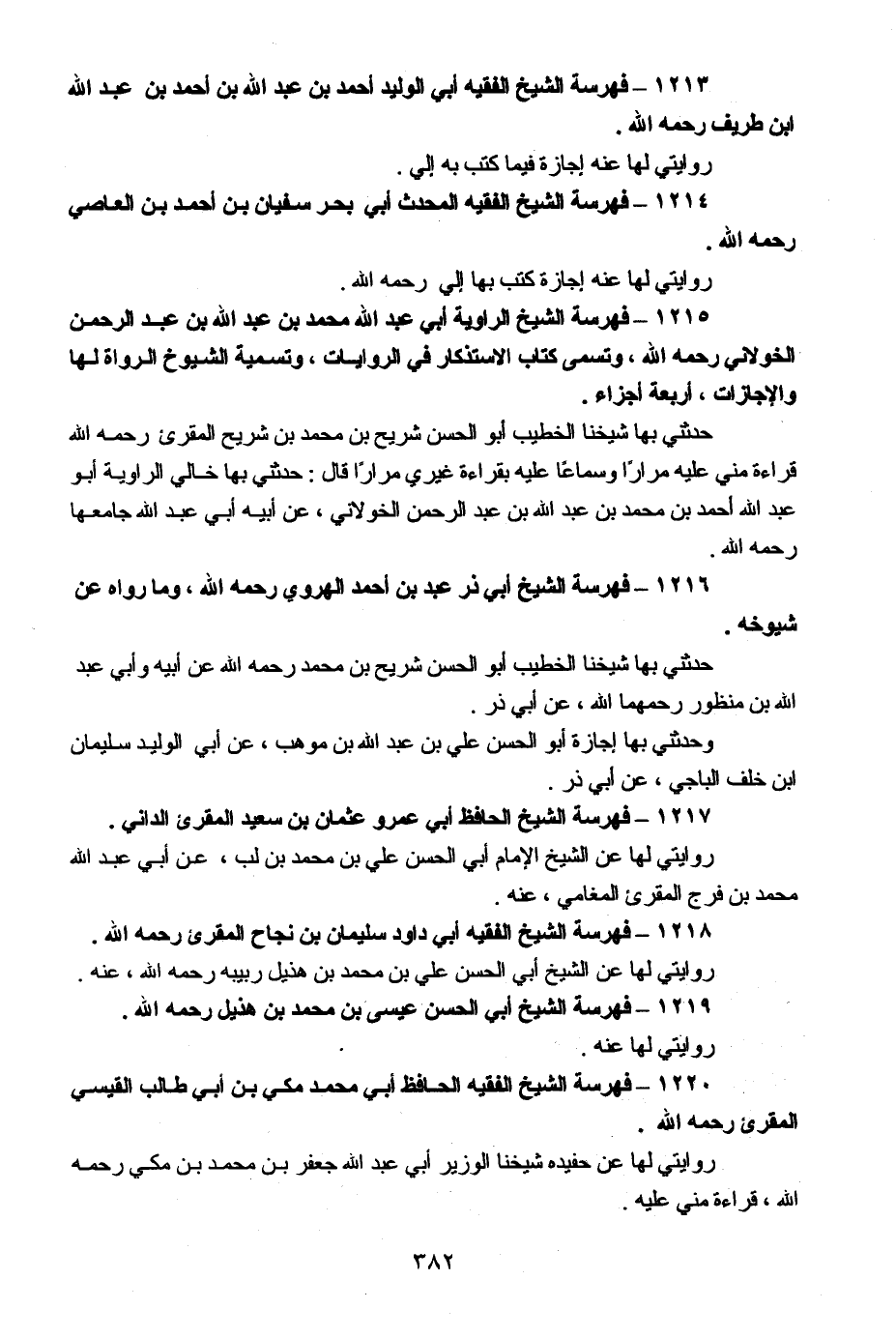 1213 - فهرسة الشَّيْخ الْفَقِيه أبي الْوَلِيد أَحْمد بن عبد الله بن أَحْمد بن عبد الله ابْن طريف رَحمَه الله