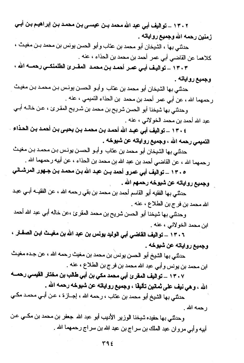 1302 - تواليف أبي عبد الله مُحَمَّد بن عِيسَى بن مُحَمَّد بن إِبْرَاهِيم بن أبي زمنين رَحمَه الله وَجَمِيع رواياته