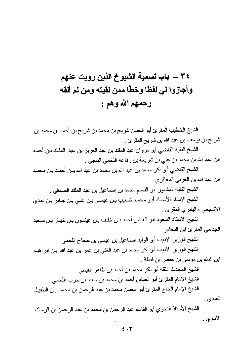 34 - بَاب تَسْمِيَة الشُّيُوخ الَّذين رويت عَنْهُم وأجازوا لي لفظا وخطا مِمَّن لَقيته وَمن لم ألقه رَحِمهم الله وهم