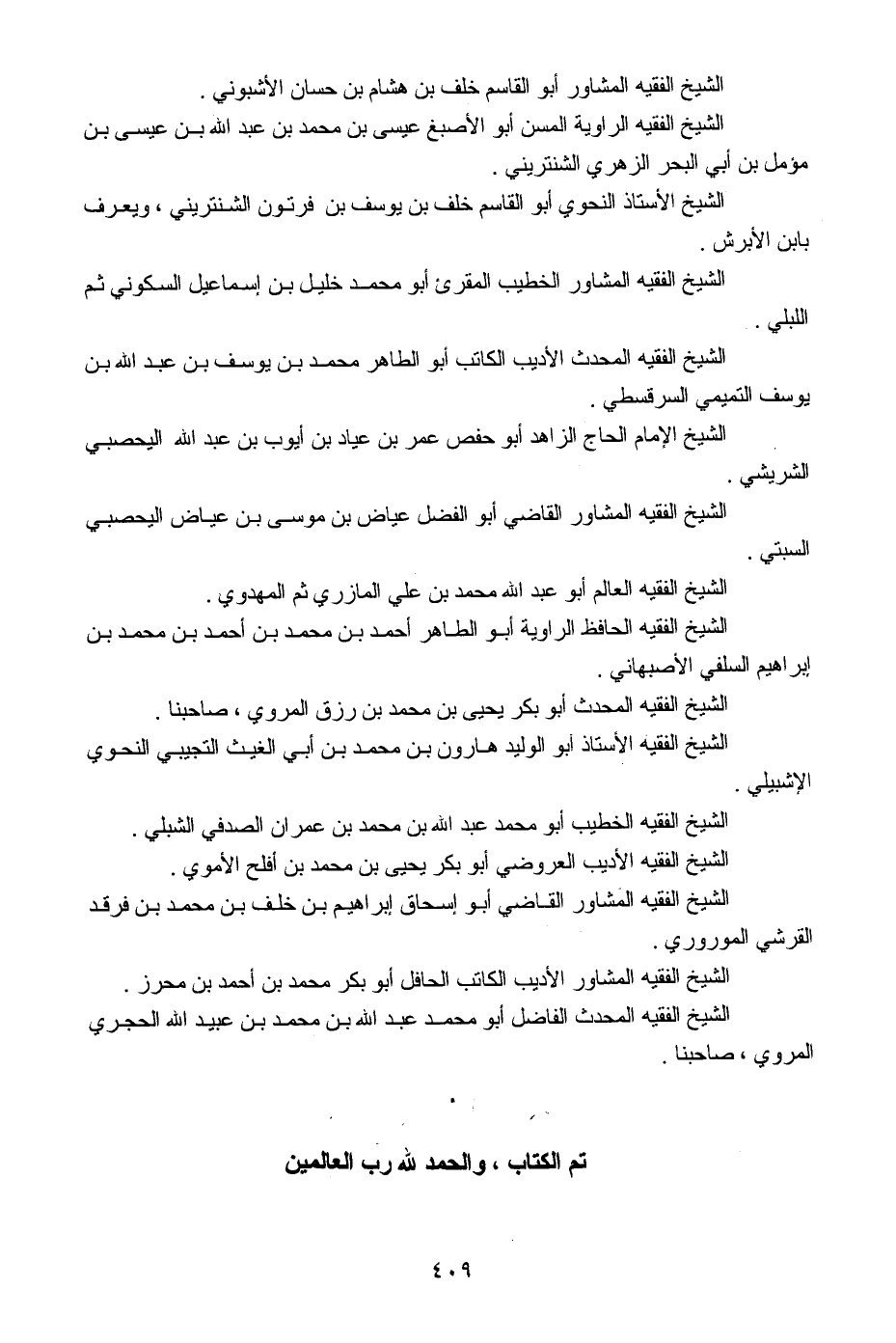 تمّ الْكتاب وَالْحَمْد لله رب الْعَالمين