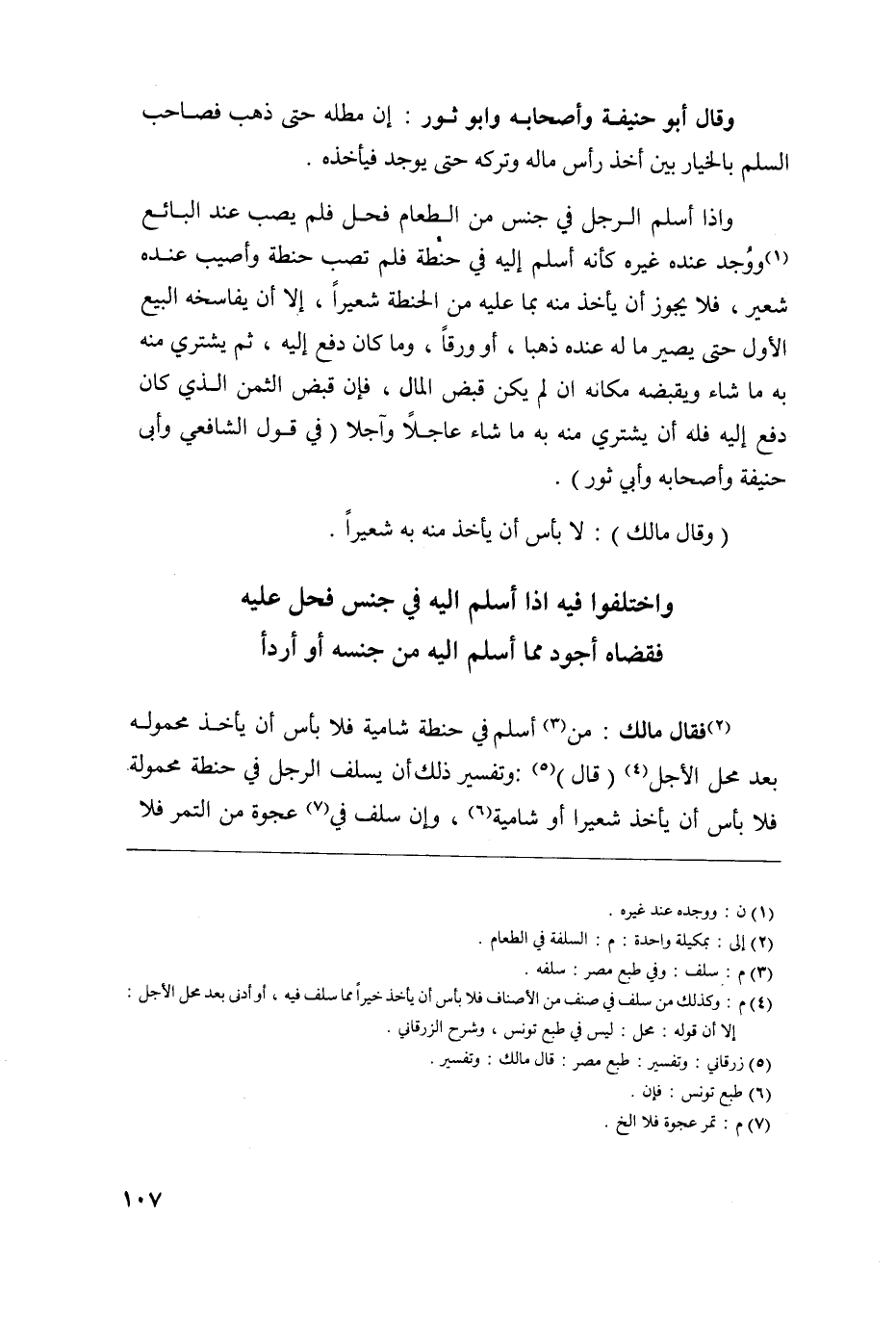 3 م: وكذلك من سلف في صنف من الأصناف فلا بأس أن يأخذ خيرا مم سلف فيه أأدني محل الجل: إلا أن قوله: محل: ليس في طبع تونس وشرح الزرقاني.