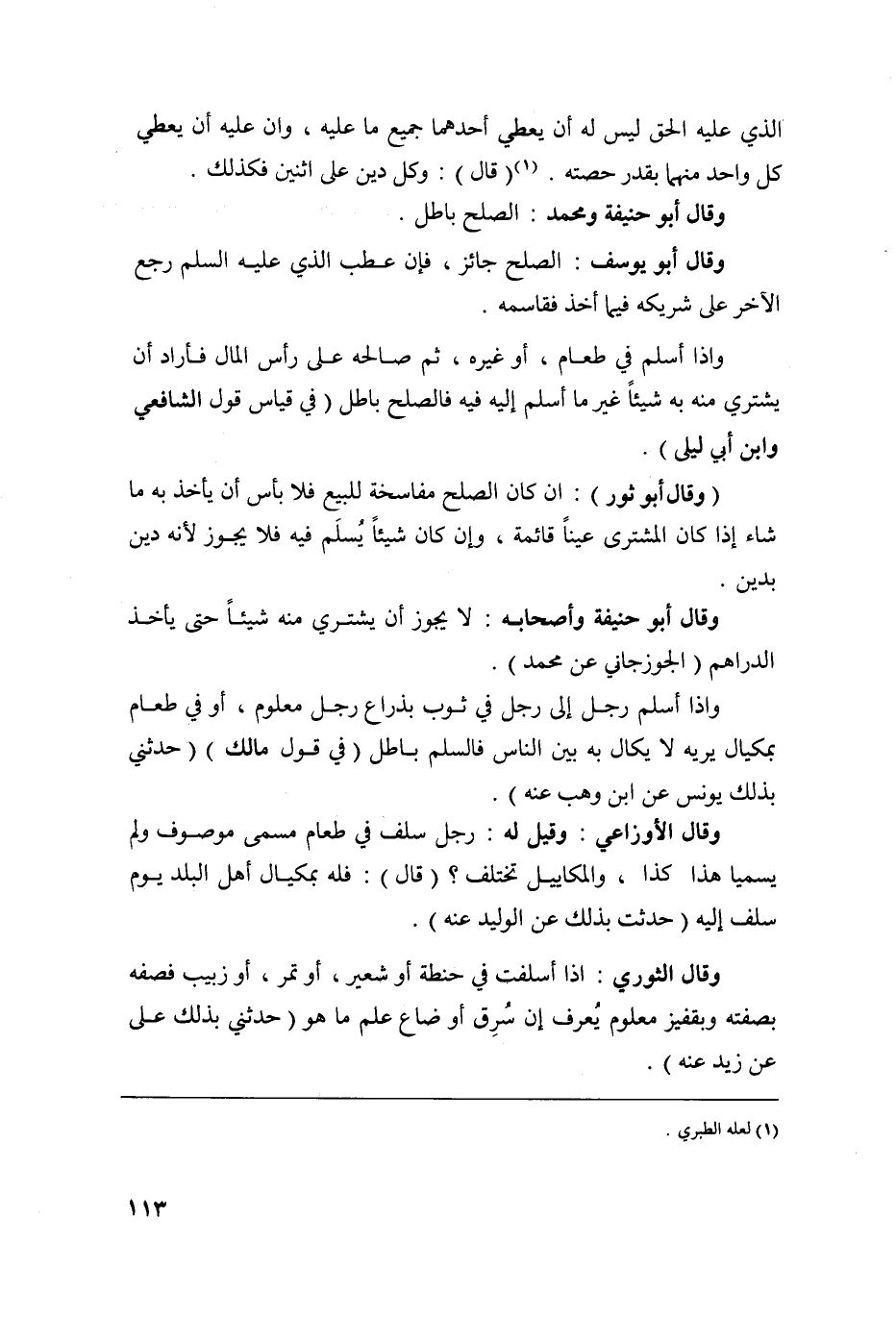 وقال أبو حنيفة وأصحابه لا يجوز أن يشتري منه شيئا حتى يأخذ الدراهم الجوزجاني عن محمد.