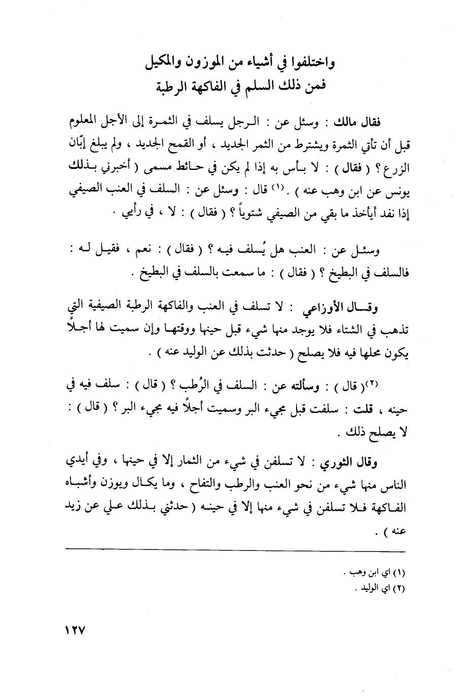 2قال وسألته عن السلف في الرطب قال سلف فيه في حينه قلت سلفت قبل مجيء البر وسميت أجلا فيه مجيء البر قال لا يصلح ذلك.