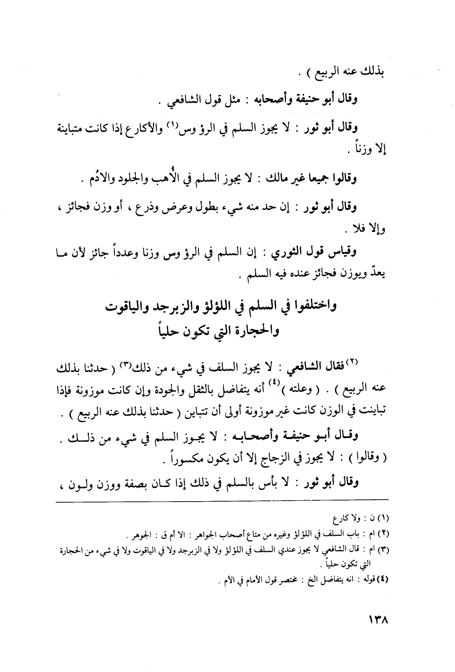 2 أم: قال الشافعي لا يجوز عندي السلف في اللؤلؤ ولا في الزبرجد ولا في الياقوت ولا في شئ من الحجارة التي تكون حليا.