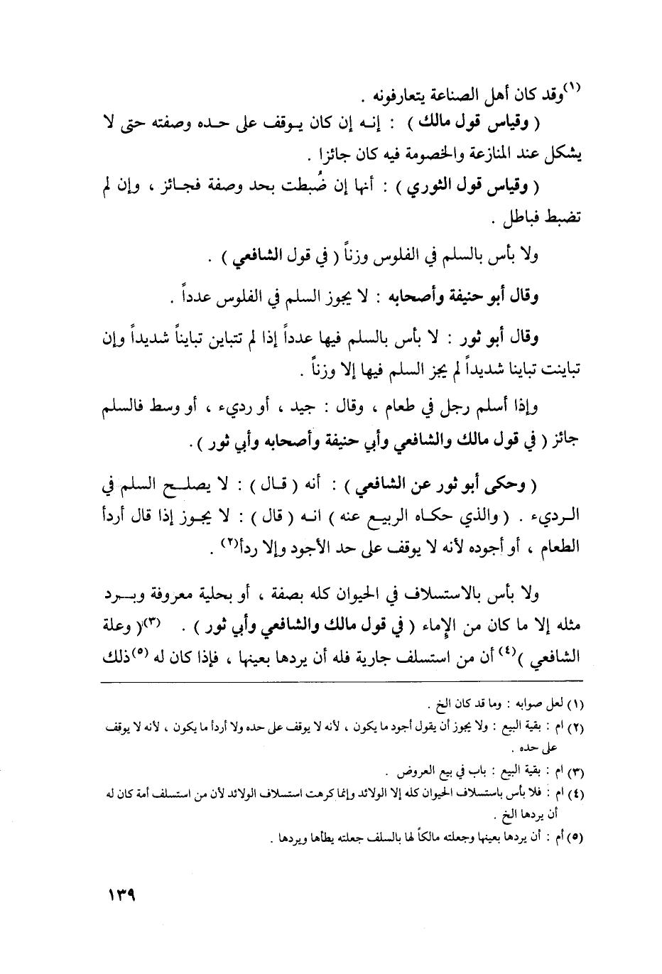ولا بأس بالاستسلاف في الحيوان كله بصفة أو بحلية معروفة وبرد مثله إلا ما كان من الإماء في قول مالك والشافعي وأبي ثور. 3وعلة الشافعي4 أن من استسلف جارية فله أن يردها بعينها فإذا كان له5 ذلك