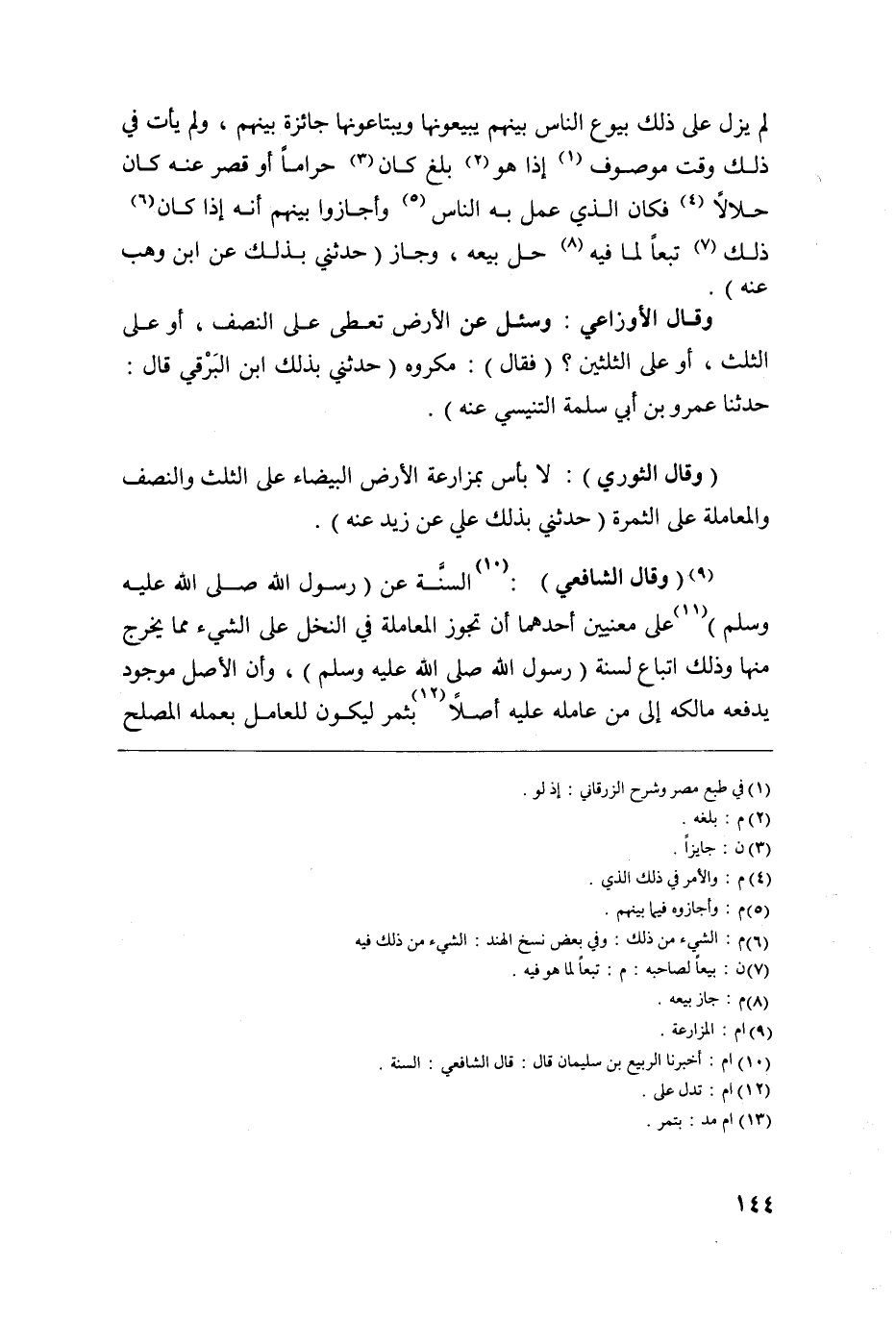 وقال الثوري لا بأس بمزارعة الأرض البيضاء على الثلث والنصف والمعاملة على الثمرة "حدثني بذلك علي عن زيد عنه".