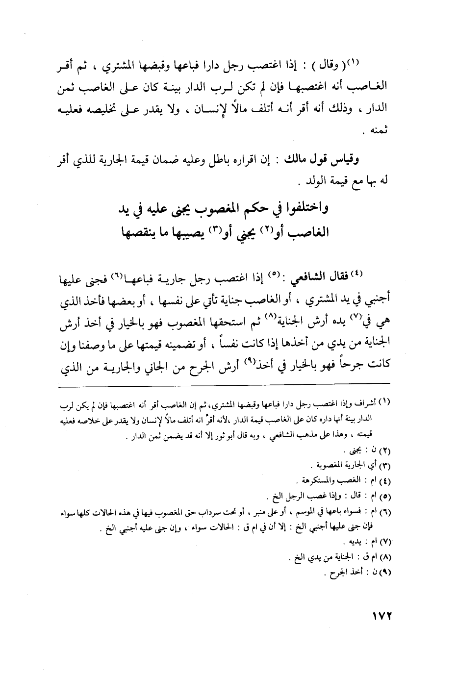 واختلفوا في حكم المغصوب يجني عليه في يد الغاصب أو1 يجني أو2 يصيبها ما ينقصها