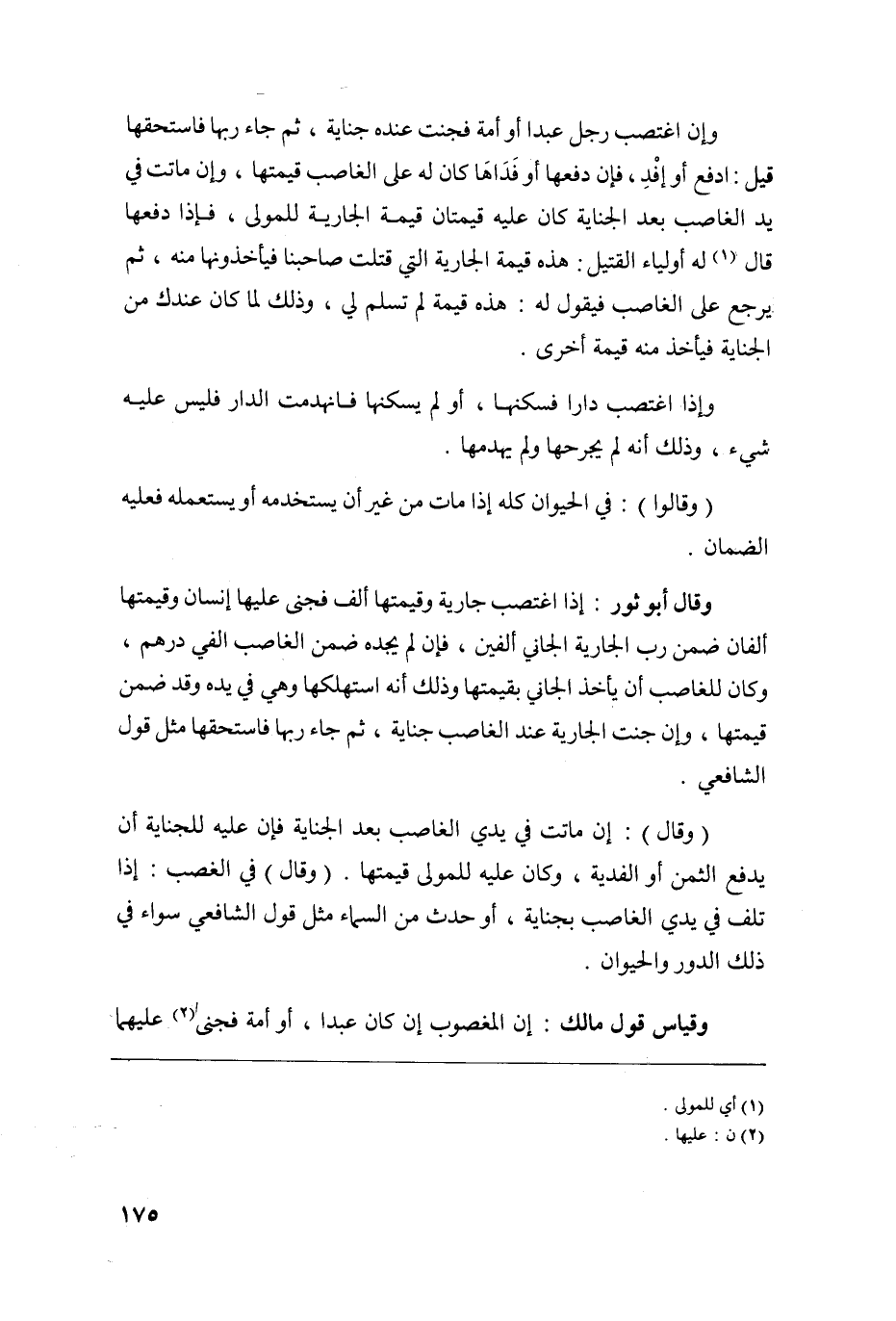 وقياس قول مالك إن المغصوب إن كان عبدا أو أمة فجنى2 عليهما
