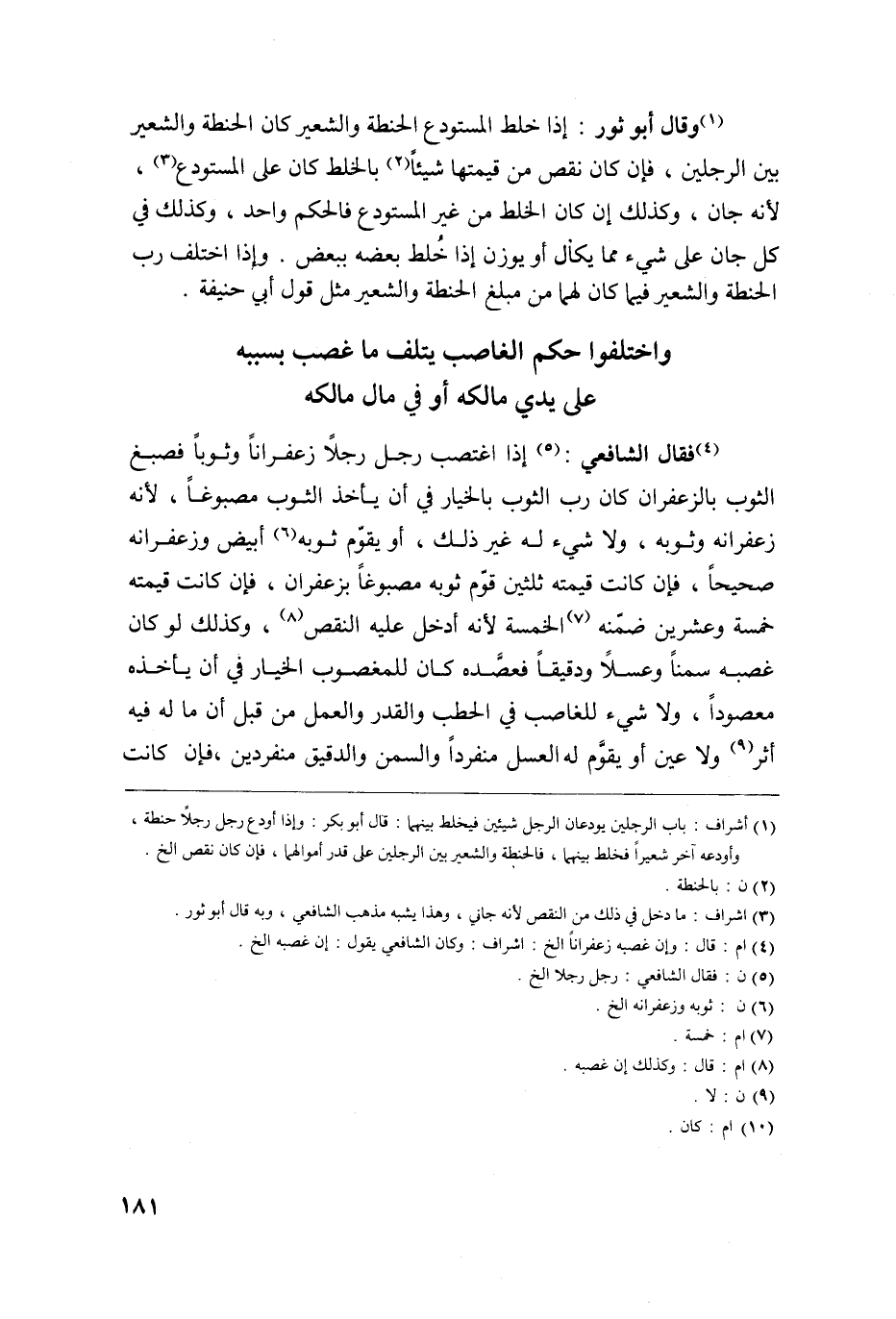 1 أم: قال: وإن غصبه زعفرانا الخ: أشراف: وكان الشافعي يقول: إن غصبه الخ ...