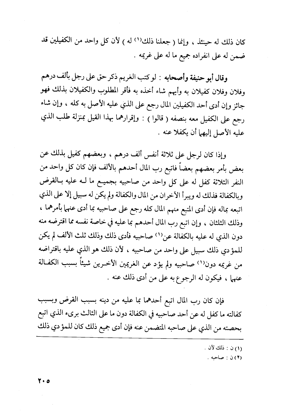 كان ذلك له حينئذ وإنما جعلنا ذلك له لأن كل واحد من الكفيلين قد ضمن له على انفراده جميع ما له على غريمه.