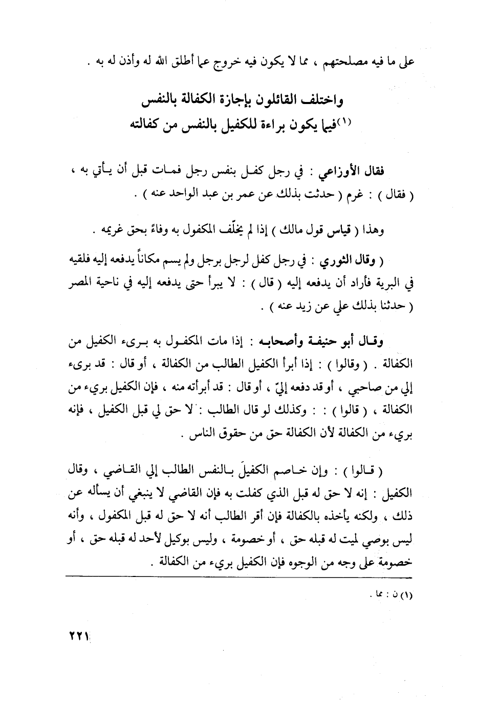 واختلف القائلون بإجازة الكفالة بالنفس 1فيما يكون براءة للكفيل بالنفس من كفالته
