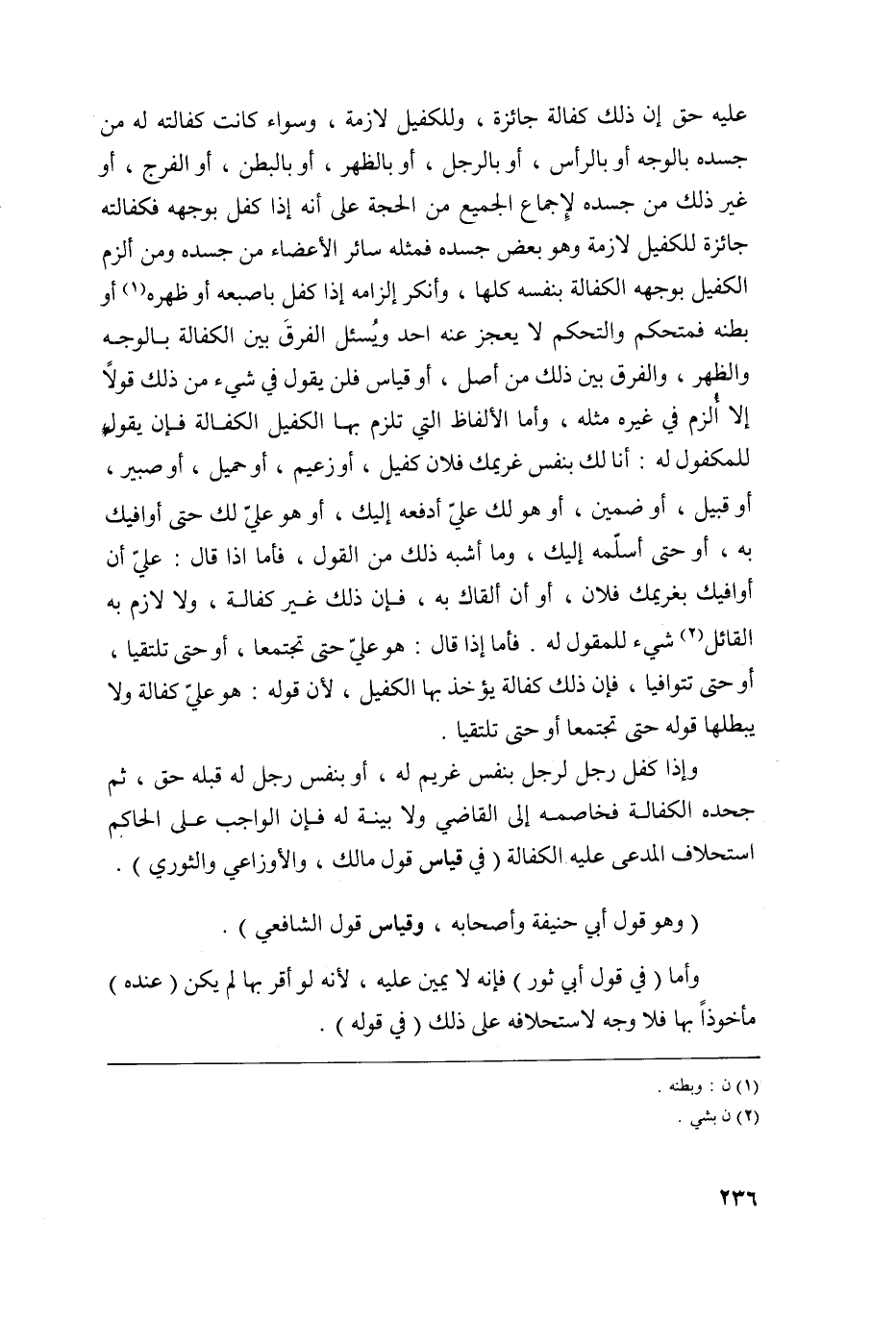 عليه حق إن ذلك كفالة جائزة وللكفيل لازمة وسواء كانت كفالته له من جسده بالوجه أو بالرأس أو بالرجل أو بالظهر أو بالبطن أو الفرج أو غير ذلك من جسده لإجماع الجميع من الحجة على أنه إذا كفل بوجهه فكفالته جائزة للكفيل لازمة وهو بعض جسده فمثله سائر الأعضاء من جسده ومن ألزم الكفيل بوجهه الكفالة بنفسه كلها وأنكر إلزامه إذا كفل بإصبعه أو ظهره1 أو بطنه فمتحكم والتحكم لا يعجز عنه أحد ويسئل الفرق بين الكفالة بالوجه والظهر والفرق بين ذلك من أصل أو قياس فلن يقول في شيء من ذلك قولا إلا ألزم في غيره مثله وأما الألفاظ التي تلزم بها الكفيل الكفالة فإن يقول للمكفول له أنا لك بنفس غريمك فلان كفيل أو زعيم أو حميل أو صبير أو قبيل أو ضمين أو هو لك علي أدفعه إليك أو هو علي لك حتى أوافيك به أو حتى أسلمه إليك وما أشبه ذلك من القول فأما إذا قال علي أن أوافيك بغريمك فلان أو أن ألقاك به فإن ذلك غير كفالة ولا لازم به القائل2 شيء للمقول له فأما إذا قال هو علي حتى تجتمعا أو حتى تلتقيا أو حتى تتوافيا فإن ذلك كفالة يؤخذ بها الكفيل لأن قوله هو علي كفالة ولا يبطلها قوله حتى تجتمعا أو حتى تلتقيا.