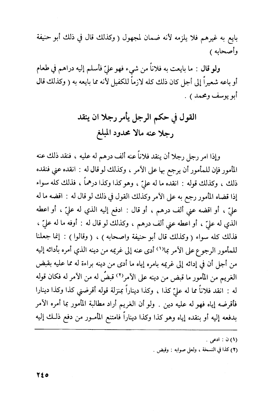 القول في حكم الرجل يأمر رجلا أن ينقد رجلا عنه مالا محدود المبلغ