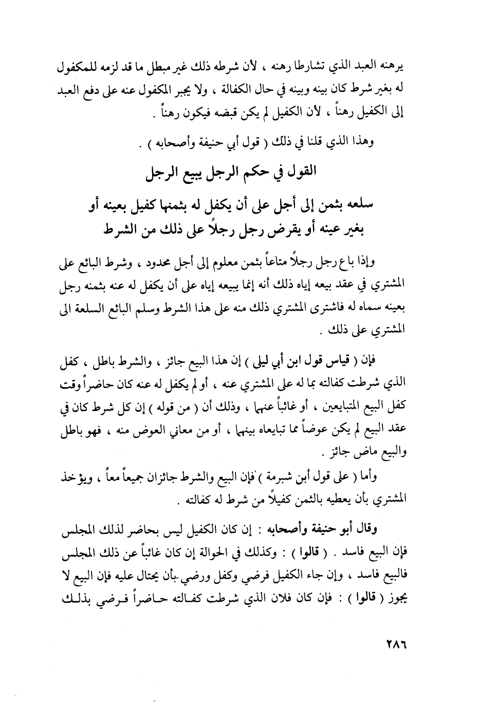 القول في حكم الرجل يبيع الرجل سلعه بثمن إلى أجل على أن يكفل له بثمنها كفيل بعينه أو بغير عينه أو يقرض رجل رجلا على ذلك من الشرط